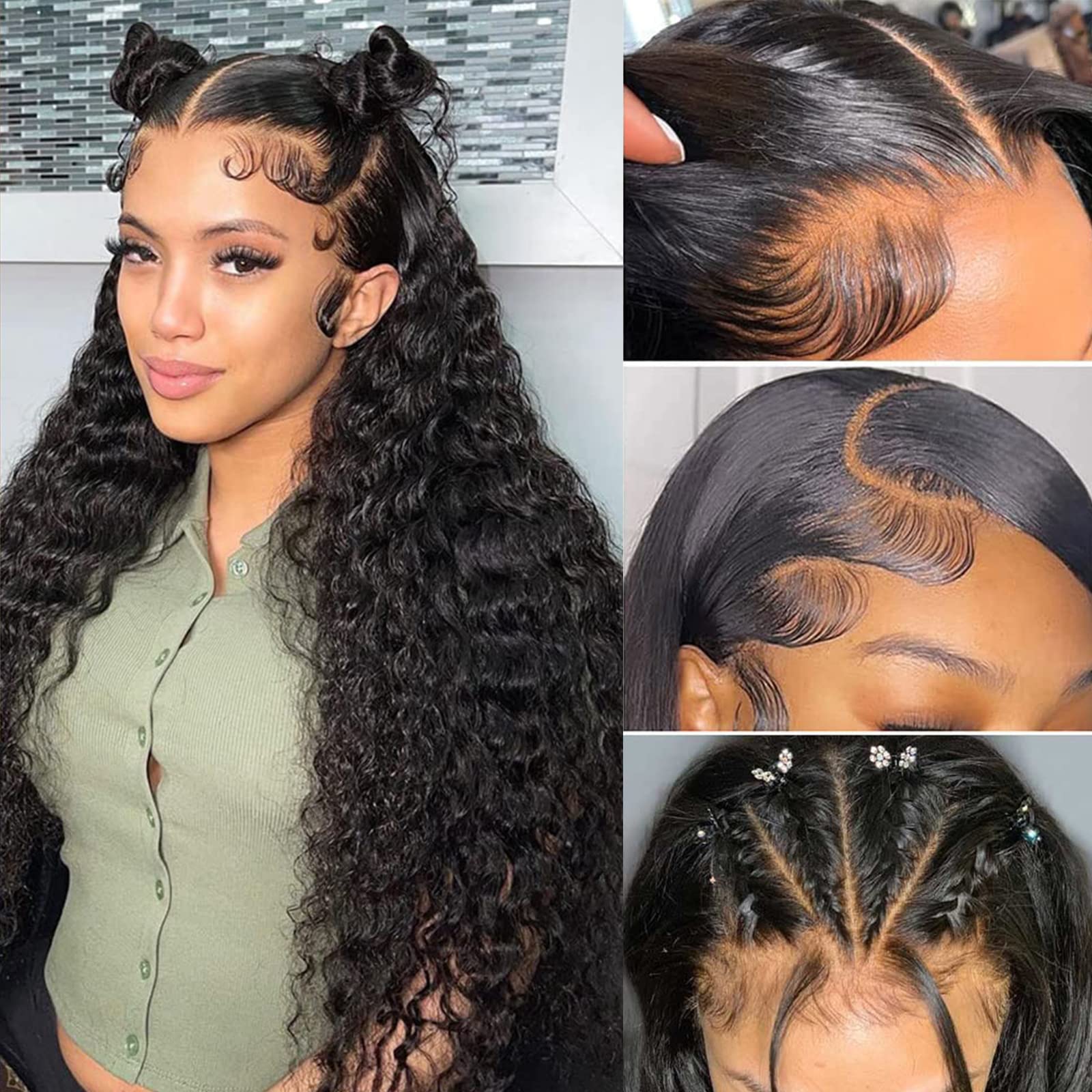 Amazon Com 32inch Deep Wave 13x6 Lace Front Wigs Human Hair Glueless Transparent Hd Curly Lace Frontal Wig Human Hair 150 Density Pre Plucked With Baby Hair Brazilian Virgin Hair Curly Lace